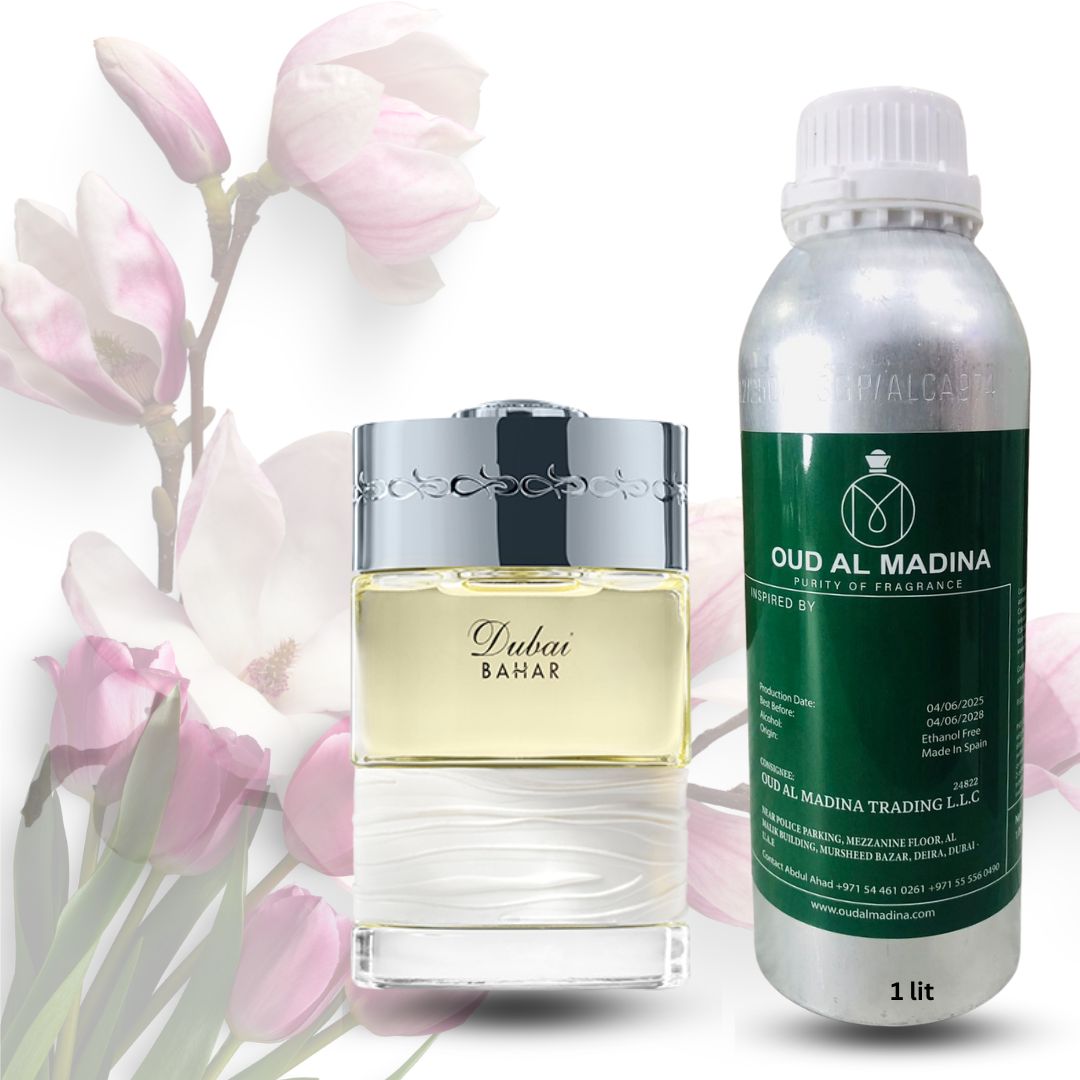 Bahar The Spirit of Dubai is an Oriental Woody fragrance for women and men. Top notes are Sea Notes, Citruses, Ozonic notes, Watery Notes, Bitter Orange, Spicy Notes, Ginger, Lime, Grapefruit, Violet Leaves, Lemon, Apple, Black Currant, Coconut, Green Notes, Pineapple, Strawberry, Plum, Cherry, Mandarin Orange, Cardamom and Raspberry; middle notes are Spices, Violet Leaf, Sandalwood, Lotus, Cyclamen, Jasmine, Cedar, Vanilla, Rose, Fir, Cashmere Wood, Saffron and Iris; base notes are Sandalwood, Precious Woods, Vetiver, Amber, Musk, Vanilla, Agarwood (Oud), Immortelle and Patchouli.