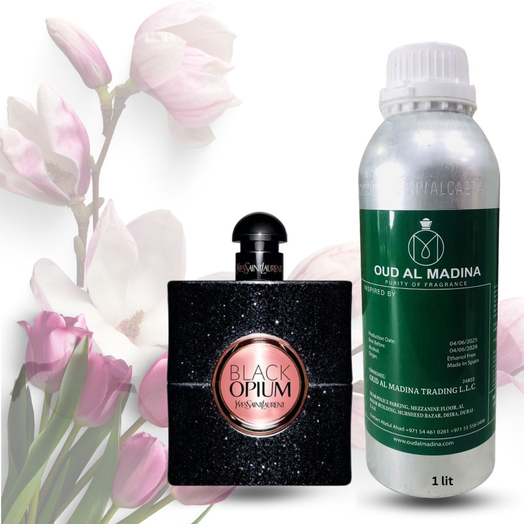 Black Opium is an Oriental Vanilla fragrance for women. Top notes are Pear, Black Currant, Citruses, and Green Mandarin; middle notes are Coffee, Tea, Jasmin, and Orange Blossom; base notes are White Wood and White Musk.