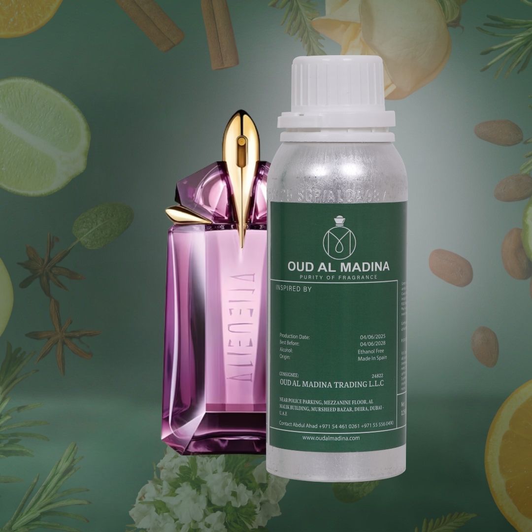 Rich Warm And Exotic Blend Of Intense Florals Women’s Fragrance Oil Alien Mugler is an Oriental Woody fragrance for women. Top note is Jasmine Sambac; middle note is Cashmeran; base note is Amber.